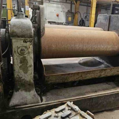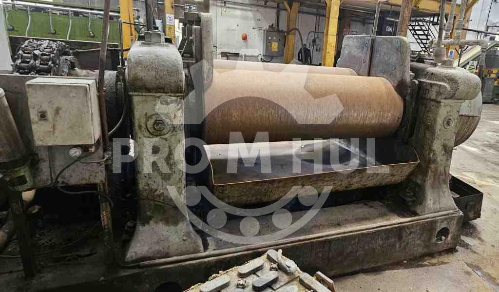 Molino de rodillos, marca Adamson, rodillos 60 x 22” con ajuste manual, trasmisión semi unidrive con motor CA 200 hp a 440 V y su tablero de control Siemens, juntas rotatorias, sistema de lubricación con bomba y todo montado sobre unibase. Equipo completo, instalado en buen estado y listo para pruebas. Ubicado en Jalisco.